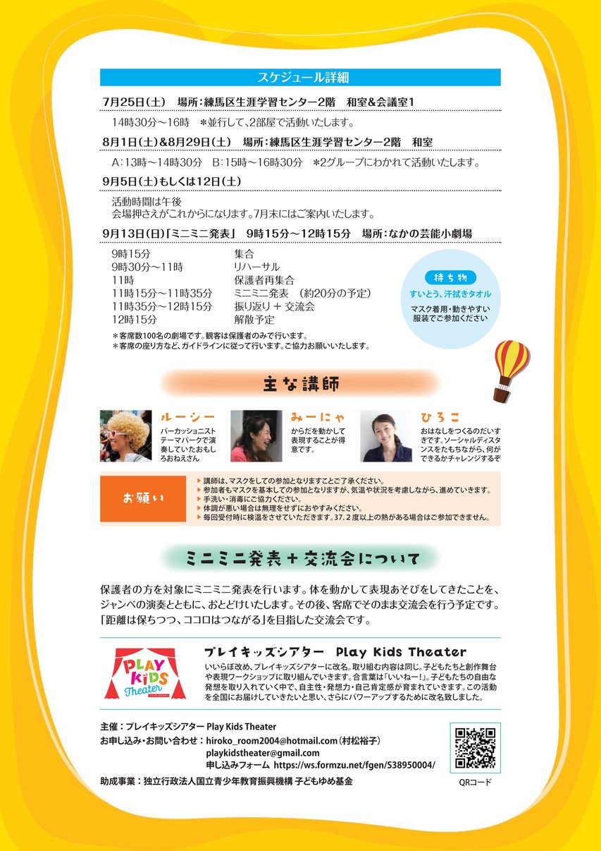 感染症拡大予防対策をとりながら、頑張っている子どもたちへ向けて、少し発散できるような1回1回が楽しい企画を開催します。距離は保ちつつ、ココロはつながろう!