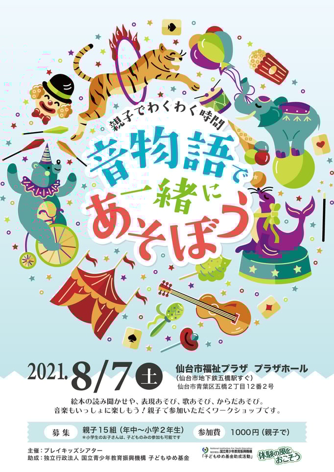 生の音楽の中でからだや創造力をつかって遊びながら、おはなしの世界へ旅に出かけたら、ステキな出会いが待っているよ!!